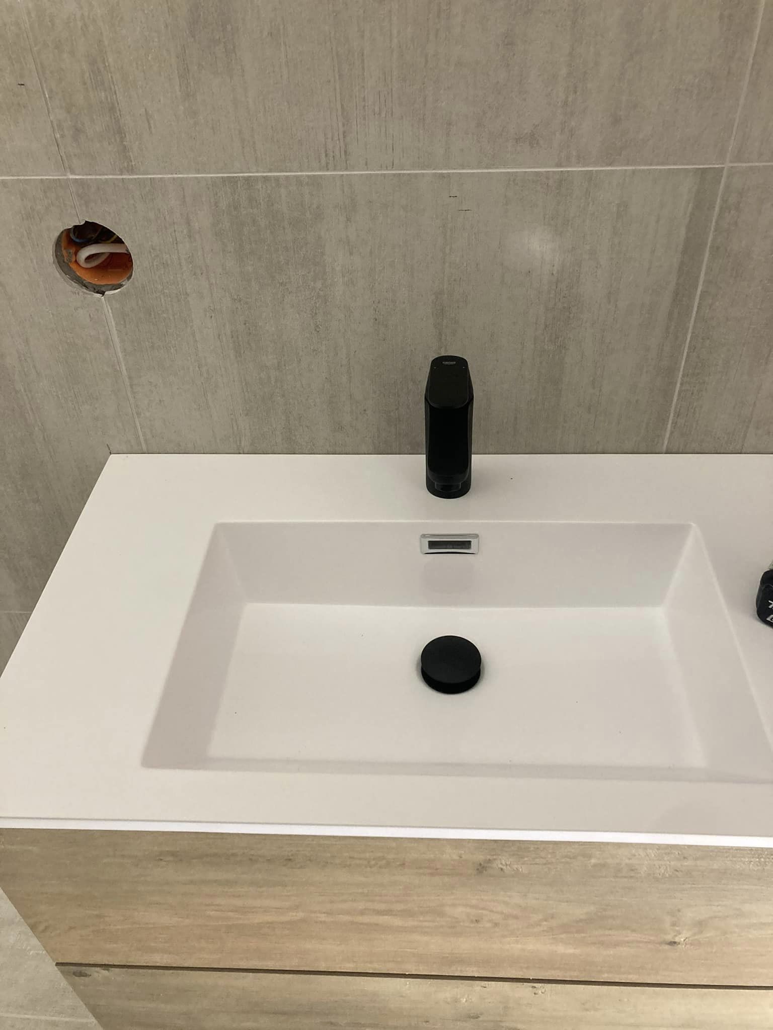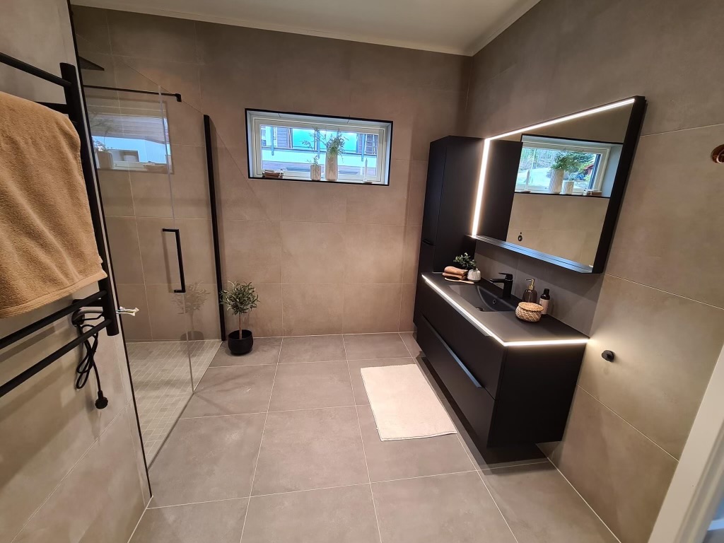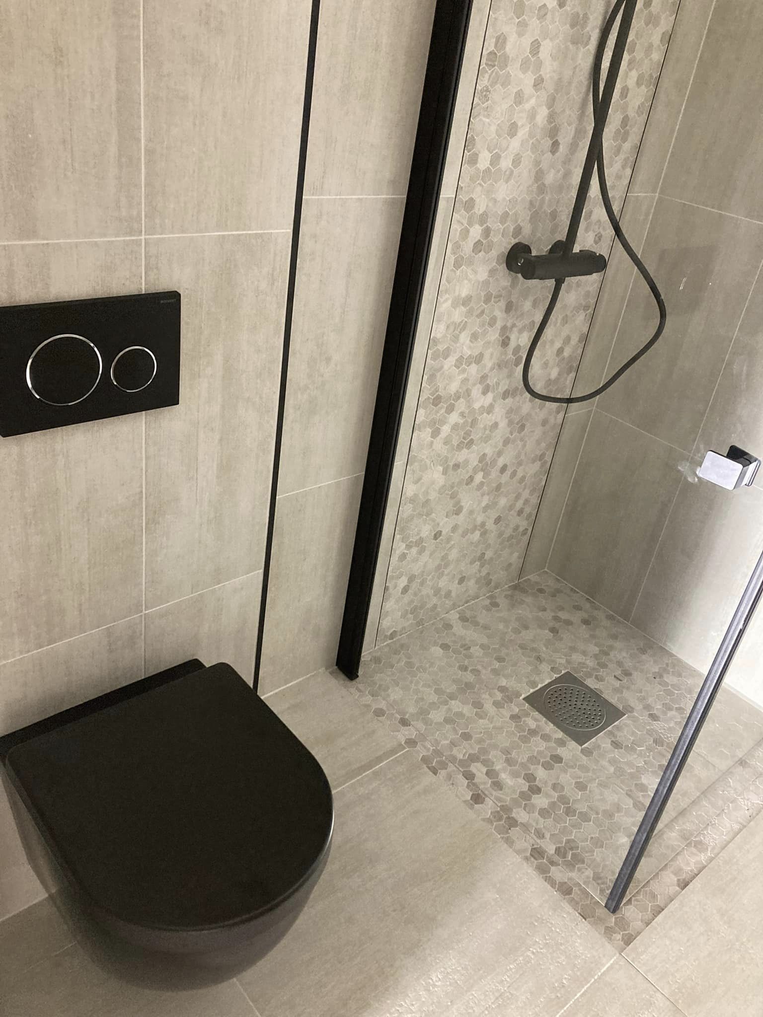 Svarte detaljer på badet som vi hadde med Drammen Entreprenør.